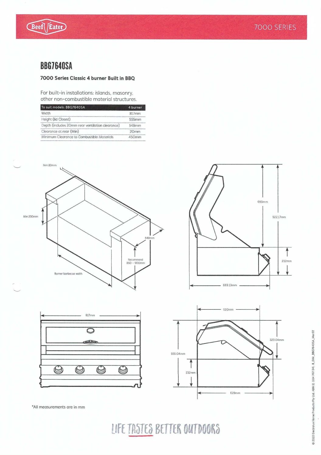 7000 Premium has a built-in 3.1kW rear burner with roasting hood lighting for better viewing and cooking conditions. The classic and premium versions have double layered hoods with large glass viewing window & integrated temperature gauge along with a full width oil & fat catchment tin. Stainless steel firebox with external seam weld for that extra durability.