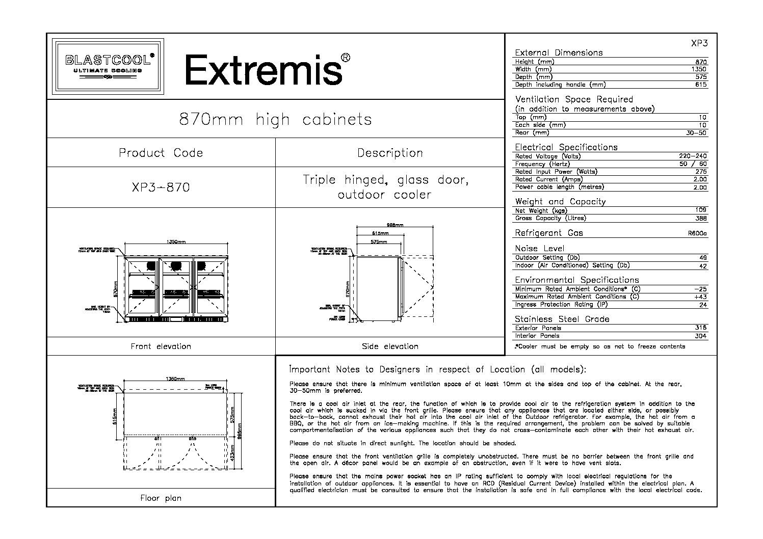 Blastcool XP 3 Triple Door Outdoor Refrigerator