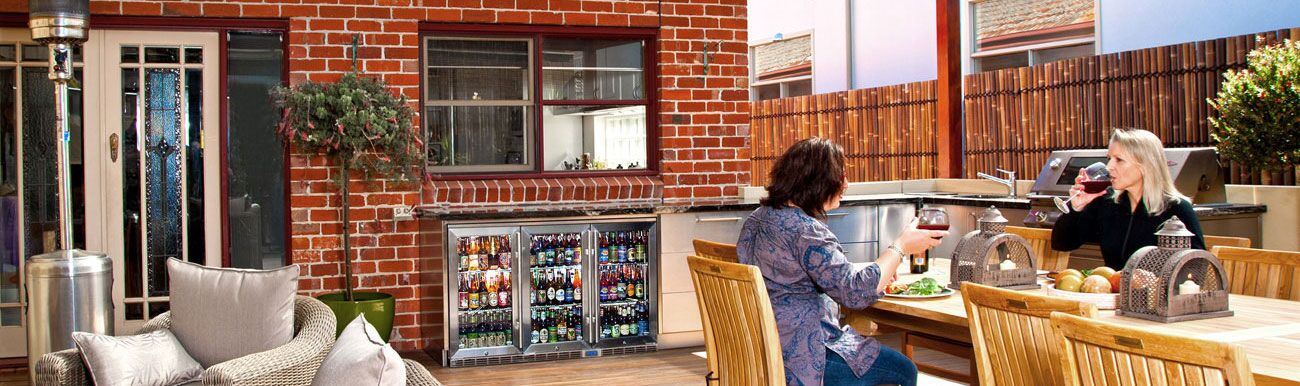 You will find built-in weatherproof appliances in stainless steel and a variety of fridge sizes