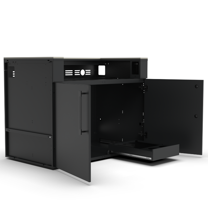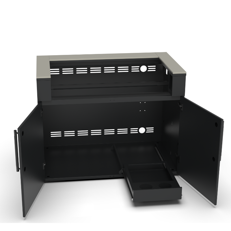 These modules are designed to integrate seamlessly with our entire range of cooking appliances, such as barbecues and griddles, and include features such as gas cylinder pull-out trays, spacious storage drawers and hinged guides for a perfect fit of doors and drawers.