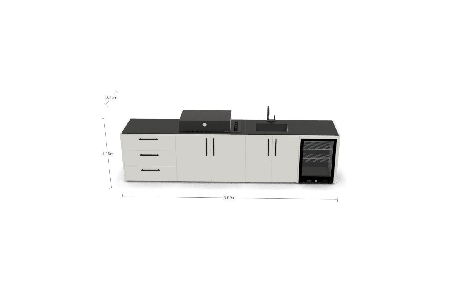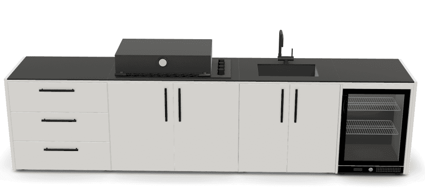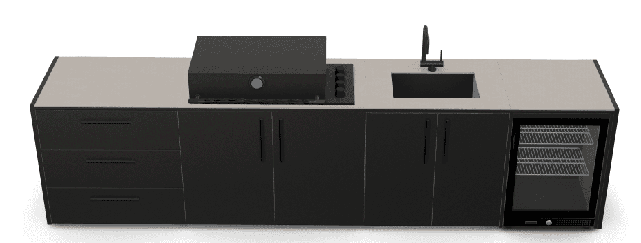 Crafted with high-quality materials that stand the test of time. From durable 1 galvanized steel with double powder coating, certified by Qualicoat, to 2 robust bamboo wood capable of withstanding the most demanding environments. These materials not only ensure durability but also add style to your outdoor space Our kitchen modules are specifically designed to seamlessly fit with our entire range of cooking appliances, such as barbecues and griddles. They also include surprising features like a 3 tray for gas cylinder extraction, 4 spacious storage drawers, and 5 hinges with guides that ensure a perfect fit for doors and drawers. But what truly makes our kitchens unique is our 6 innovative Neolith countertop. Available in two elegant finishes: Iron Frost and Iron Satin, in black and white, respectively. These porcelain materials are exceptionally resistant to the elements, thanks to their non-porous surface, which can also withstand scratches and high temperatures.