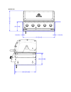 The Broil KingĀ® Baron™ 520 Built-In features 5 stainless steel Dual-Tube™ burners, reversible cast iron grids, warming rack, stainless steel Flav-R-Wave™ cooking system, electronic igniter, and stainless steel ignition switch.