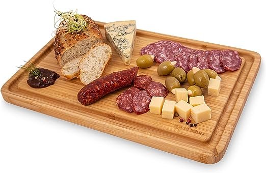 One side of the board features a spacious moat that adeptly captures drippings, complete with a user-friendly pour spout for easy disposal. Meanwhile, the flat side provides a generous chopping area for all your cutting needs. Please note that for optimal longevity, it’s best to hand wash these robust bamboo surfaces instead of using a dishwasher.