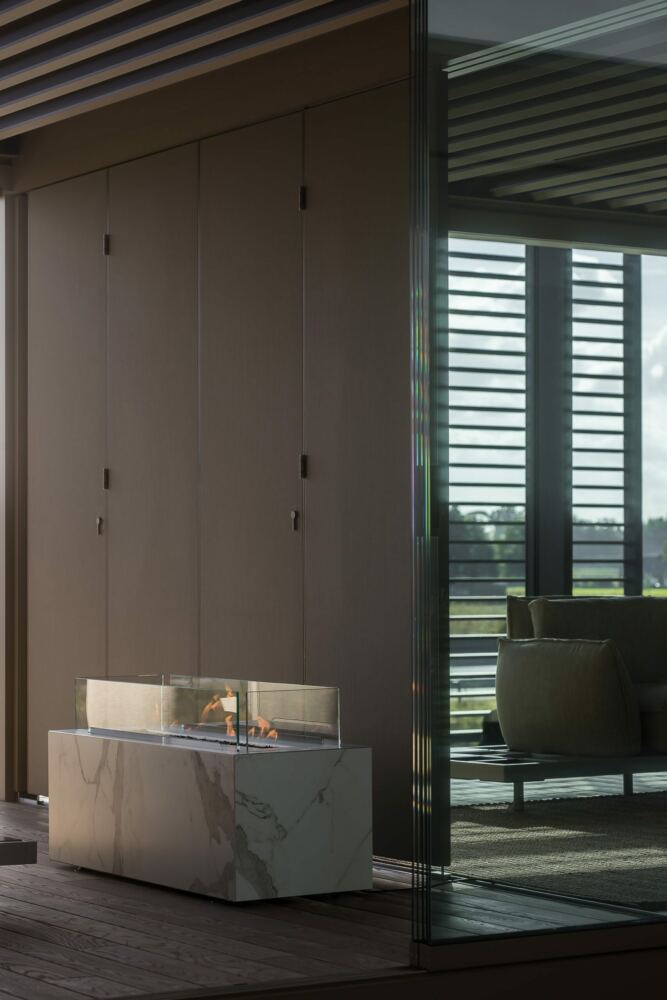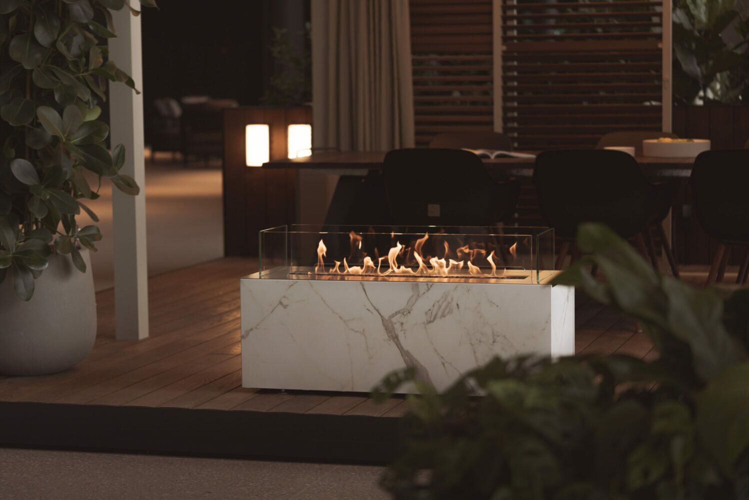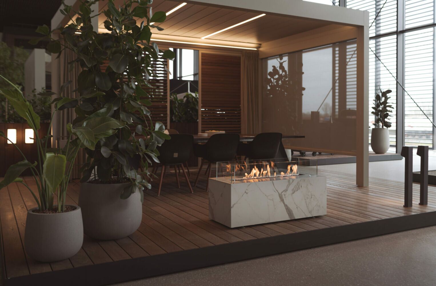 The Laurent Fireplace With Neo Automatic Ethanol Burner, part of Planika’s Net Zero Fireplaces, uses the patented BEV technology, which eliminates direct contact between the fuel and the fire, thereby guaranteeing heating efficiency and safety.