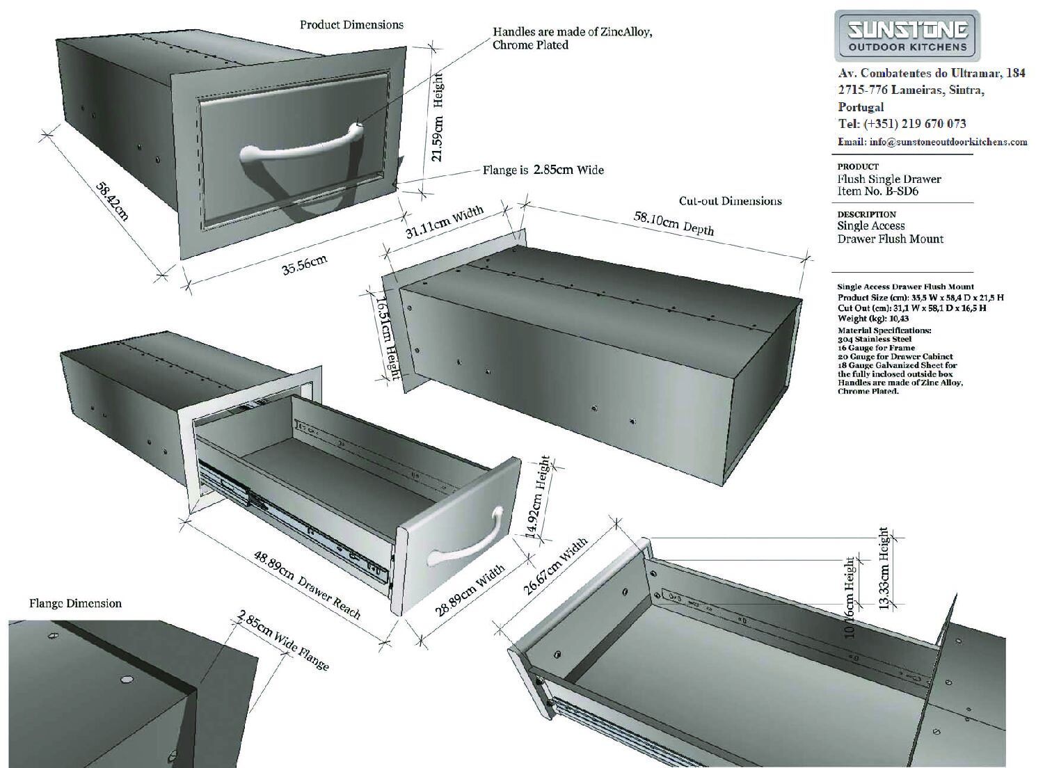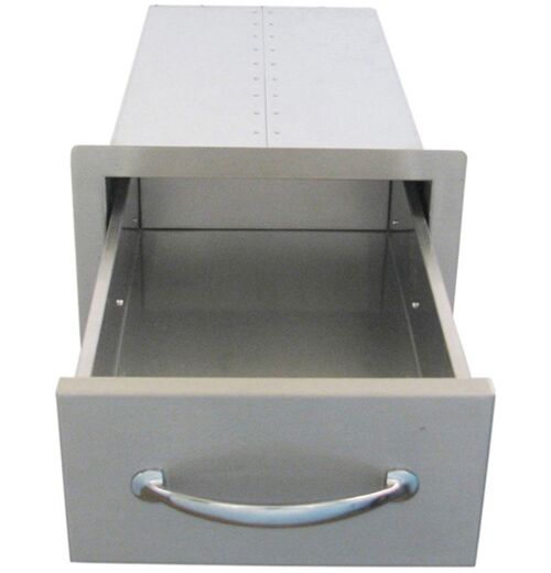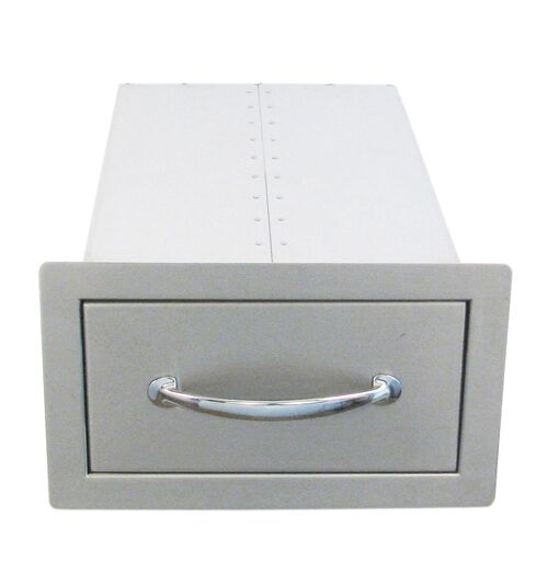 This deep drawer will give symmetry and add storage space to your Outdoor Kitchen.You can also make combinations of drawers side by side below your counter or match it with a Double or Triple Drawer.With matching brushed stainless steel and Polished Chrome Handle, this beautiful drawer creates a perfect complement to your Sunstone® Side Burner and all your BBQ Tools, Sauces and Spices will be safe.