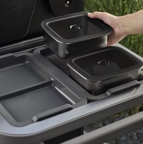 A standout innovation of the Weber Genesis is the Weber Works system integrated into the right side table. This functional system includes a removable lid, rails, and hooks designed to keep your utensils and accessories organized and within easy reach. Effortlessly attach accessories such as a storage bin, cutting boards, or a lamp. A practical and modern solution that optimizes space and enhances your outdoor cooking experience.